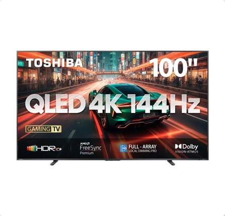 The Toshiba 100-Inch Z670N Series QLED Smart LED TV features Quantum Dot Technology and 4K UHD resolution (3840 × 2160), delivering stunning visuals with vibrant colors and sharp contrast. Enjoy immersive audio with dual 15W RMS stereo speakers.
