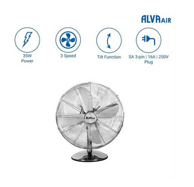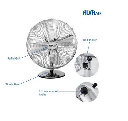 - Description: Alva Air 30cm Chrome Metal Desktop Fan
