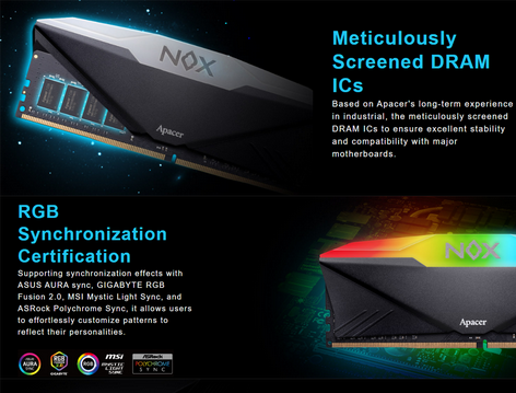 Apacer Nox 16GB RGB DDR4 3600MHz Gaming Memory
