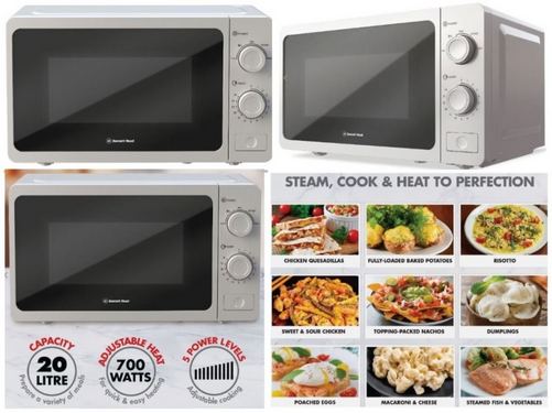 The Bennet Read 20L Manual Microwave offers precision cooking with 5 power levels and a 700W rated power, making meal preparation quick and easy.