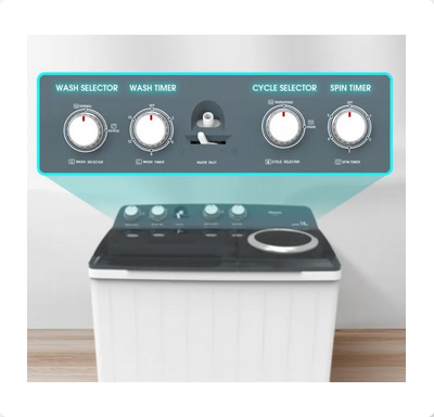 Its durable ABS body, PP pulsator, and energy-efficient 600W motor guarantee long-lasting reliability and reduced power consumption. Designed for convenience, it features four easy-to-use control knobs, a spin spray function, side water inlet, and a built-in filter for superior washing results. Offering low noise operation (≤62dB) and IPX4 waterproof protection, this washer delivers durability, performance, and peace of mind.