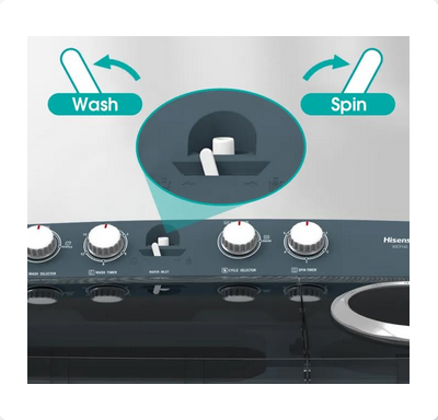 The Hisense 16Kg Twin Tub Washing Machine offers powerful cleaning with a robust 1250rpm spin speed and a spacious 138L wash tub, perfect for large households.