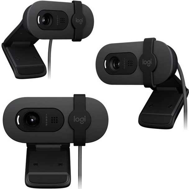 Enhance your video calls with the Logitech Brio 100, a Full HD webcam featuring auto-light balance, an integrated privacy shutter, and a built-in mic.